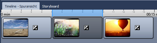 Wählen Sie nun die Einblendung aus. Diese Einstellung überträgt sich auf alle markierten Objekte (also alles, was Sie bisher in die Timeline eingefügt haben).