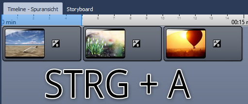 Vielleicht kennen Sie das auch aus anderen Programmen – mit Strg und A kann man alles markiereren. Das klappt auch in der DiaShow 9. Drücken Sie die Tasten Strg und A gleichzeitig.