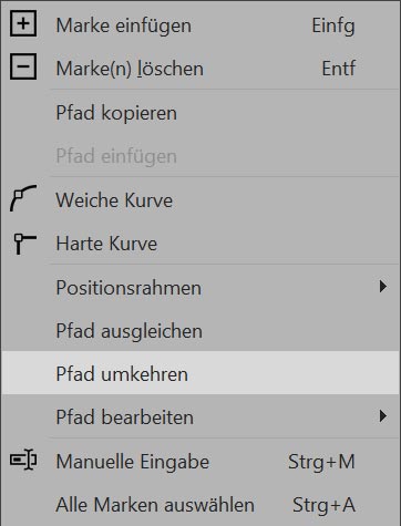Gehen Sie hierzu genauso vor, wie beim Hinein-Zoomen. Wenn Sie fertig sind, klicken Sie mit der rechten Maustaste auf eine der orangenen Marken und wählen „Pfad umkehren“. Schon geht der Zoom aus dem Bild heraus, statt hinein.