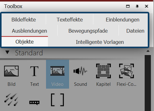 Dazu müssen Sie ein Kapitel-Objekt aus der Toolbox in die Timeline ziehen. Auf dieses Kapitel ziehen Sie das Bild, das den Text erhalten soll.