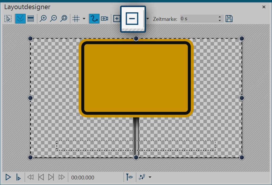 Schilder und Label sind ideal für Beschriftungen. Wenn Sie ein Element beschriften möchten, fügen Sie es am besten in eine Flexi-Collage ein. Entfernen Sie die erste Bewegungsmarke, so ist das Element groß im Layoutdesigner sichtbar.