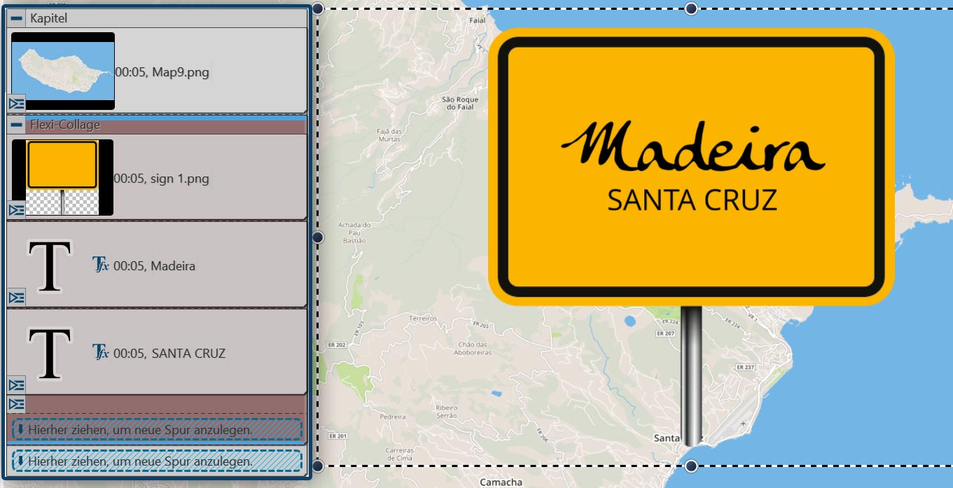 Jetzt klicken Sie in der Timeline auf den roten Rand der Flexi-Collage, um alles genau auf der Karte zu platzieren.