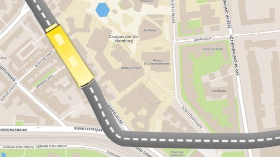 Hier soll die Straße schon vorhanden sein, der Bus erscheint und fährt die Straße ab.