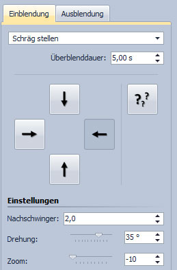 es öffnet sich der Dialog zum Anpassen der Überblendung, rechts gibt es eine Vorschau des Effektes und links kann man die Eigenschaften der Einblendung festlegen, sodass nichts dem Zufall überlassen bleibt.
