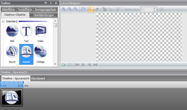 - Ziehen Sie aus der Toolbox ein Kapitel in die Timeline.