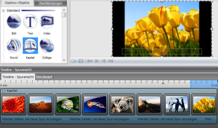 Wie wir wissen, muss für das Vorhandensein mehrer Spuren zuerst ein Kapitel eingefügt werden und in diesem sollten Ihre Bilder stecken.