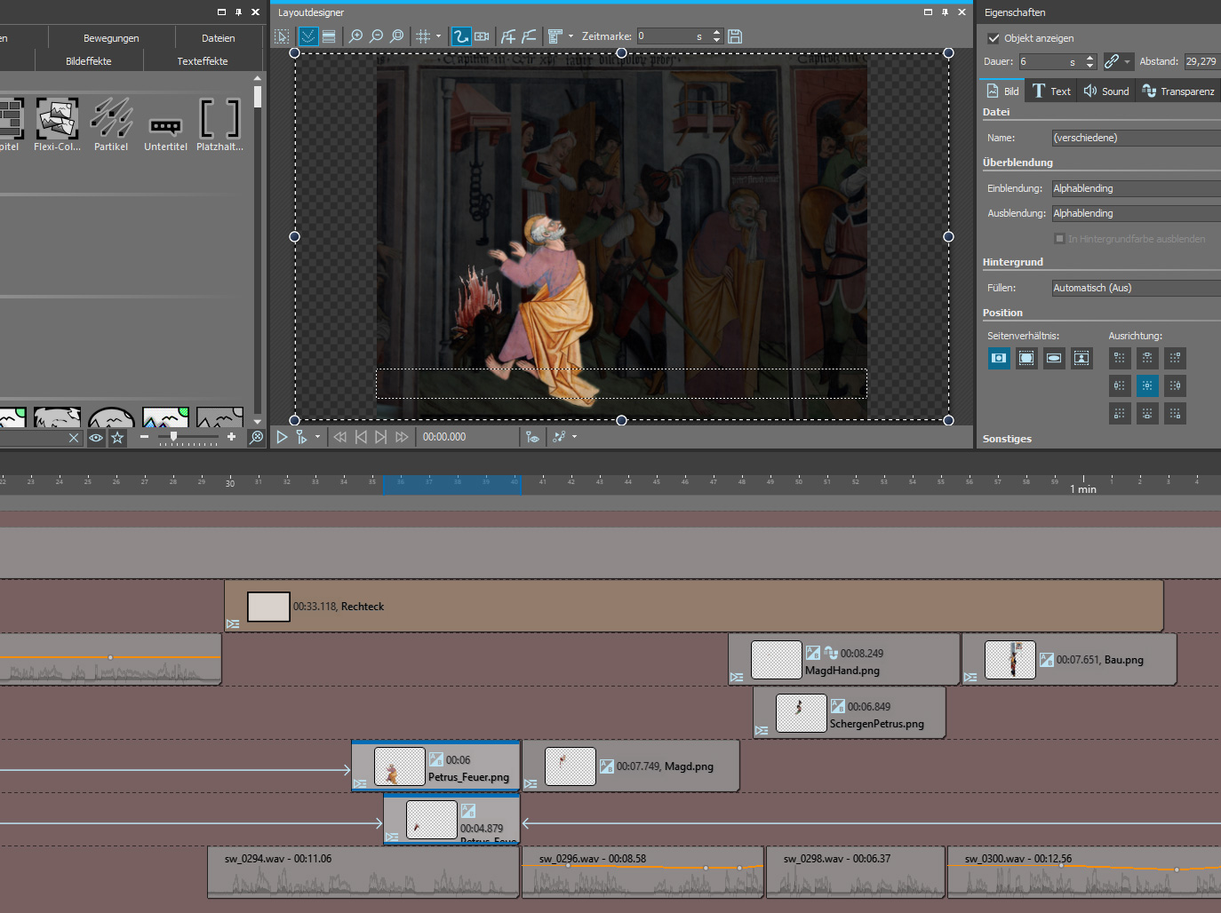 Inzwischen nehmen die Tonaufnahmen den größten Teil der Projekte in Anspruch, denn sie müssen inhaltlich aussagekräftig und kompatibel mit den Bildern sein.
