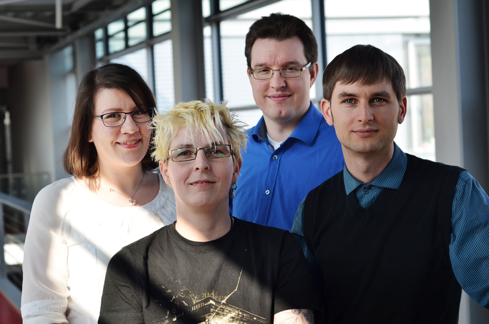Unser Support-Team (v.l.n.r.) : Nadine Kabelitz, Alexandra Hübner, Daniel Stiber mit Firmengründer Steffen Binas