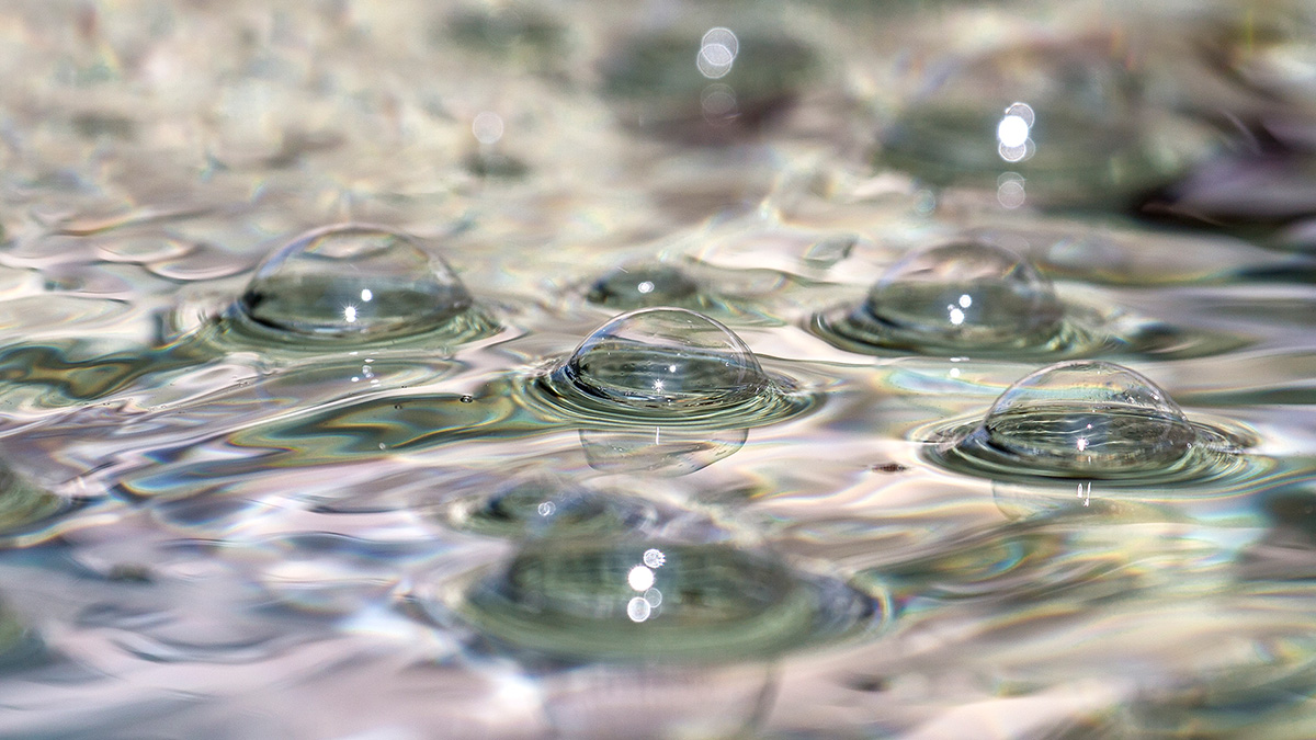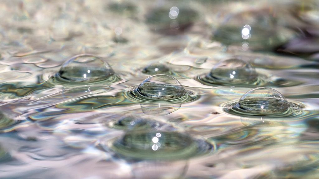 Jetzt schauen Sie, welch ein Chaos ein so harmlos aussehender Brunnenstrahl im Becken auslösen kann. Je nach Fallhöhe und Dicke des Strahls geht es im „Einschlagbereich“ turbulent zu.