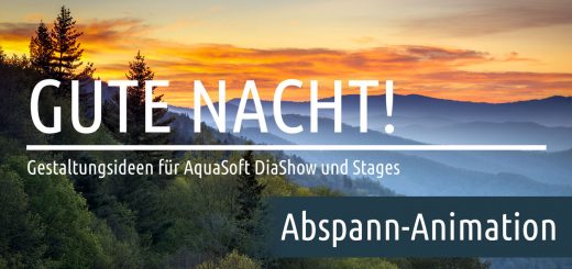 Verwendet wird für die Titelanimation der Effekt „3D-Rotation“. Der Effekt findet sich sowohl in der DiaShow 11 Ultimate als auch in Stages, nur in Stages jedoch lässt sich die Drehung als Bewegung animieren. (Ein ausführliche Vorstellung des 3D-Rotation-Effekts und wie Sie ihn in DiaShow und Stages nutzen können, sehen Sie hier.)