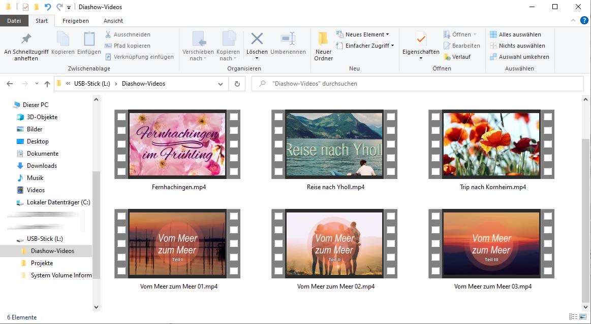 Wurde das Video fertig errechnet und auf Ihrem PC gespeichert, können Sie das Video vom PC auf den USB-Stick kopieren. Stecken Sie den USB-Stick danach an Ihren Fernseher (oder an daran angeschlossene Wiedergabegeräte an).