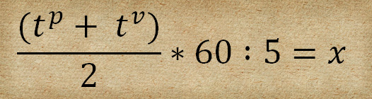 Nun überlegt man sich, wieviel Zeit das Publikum mitbringt (t^p in Minuten) und wieviel Zeit man benötigt, um seinem Thema gerecht zu werden (t^v in Minuten). Beide Werte werden addiert und durch zwei geteilt. Das Ergebnis muss man nun nur noch in Sekunden umrechnen und durch 5 teilen, schon hat man die optimale Bildanzahl (x) .