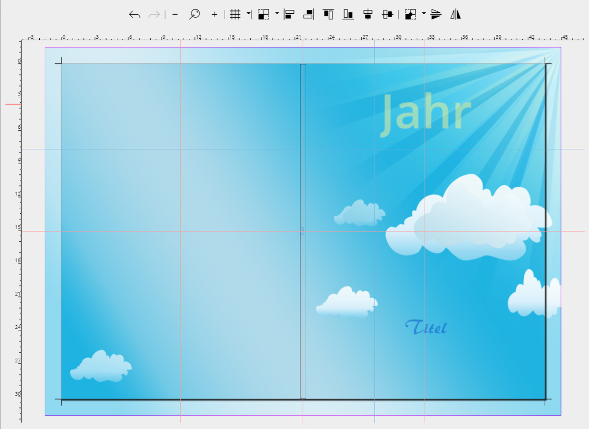 In YouDesign Photo Book 5 Pro haben Sie ab sofort zusätzliche Möglichkeiten Ihr Layout perfekt abzustimmen. Der Seiteneditor ist eingerahmt von (abschaltbaren) Linealen. Ziehen Sie sich einfach eigene magnetische Hilfsflinien aus dem Lineal auf Ihre Seite.
