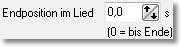 Hier können Sie bestimmen, wann das Lied enden soll. Dabei ist wieder die Zeitmarke im Lied zu wählen. Möchten Sie das Lied nach 2 Minuten beenden, so geben Sie hier 120 s ein.