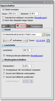 Der Sound-Assistent kann auch aus den Eigenschaften eines Bildes direkt gestartet werden. Dazu gibt es den Aufnahme-Button.