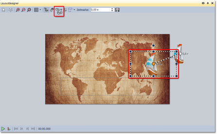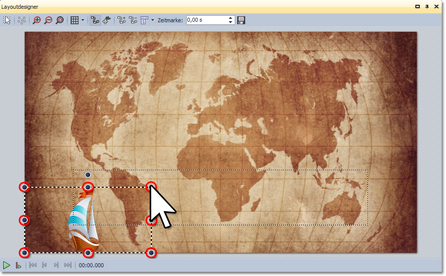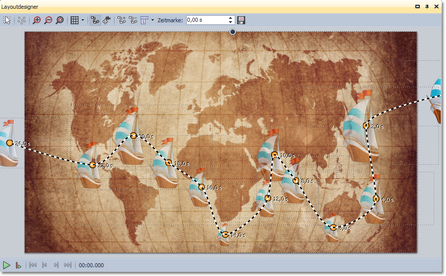 In diesem Beispiel soll ein Schiff über eine Landkarte reisen. Dabei bildet das Bild der Landkarte den Hintergrund, dieser bleibt immer an der selben Position, erhält also keinen Bewegungspfad.
