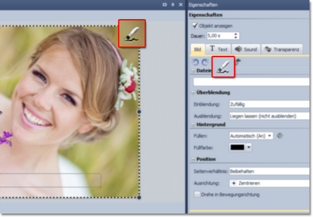 | • | oder klicken Sie auf das Pinsel-Symbol, das sich im Fenster Eigenschaften befindet |