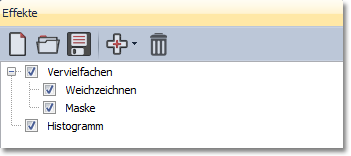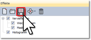 Klicken Sie dazu auf der Speichern-Symbol und geben Sie einen Namen für den Bildeffekt ein. Er erscheint dann in der Toolbox unter Bildeffekte - Eigene Bildeffekte.