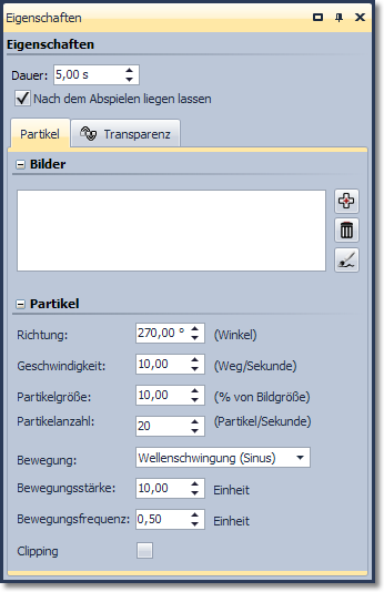Das Partikel-Objekt zeigt Ihnen ein oder mehrere Bilder in verkleinerter Form an und bewegt sie auf dem Bildschirm.