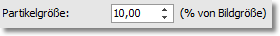 Hier bestimmen Sie die Größe der Partikel. Die Größe wird anhand des Positionsrahmens im Layoutdesigner errechnet. Ist der Positionsrahmen auf der vollen Größe im Layoutdesigner und die Partikelgröße steht auf 10%, so verfügen die Partikel über 10% der Größe des Positionsrahmens. Verkleinern Sie diesen, so werden die Partikel relativ dazu kleiner.