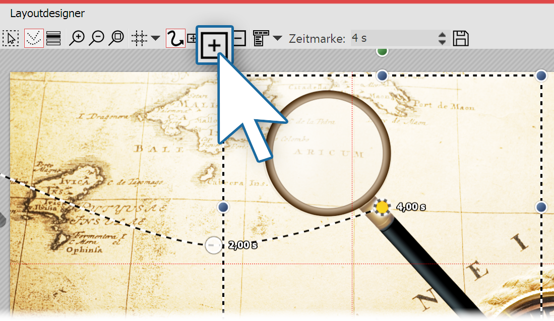 4. Neue Bewegungsmarke vergrößern![]() Neue Bewegungsmarke erstellen Erstellen Sie nun die nächste Bewegungsmarke mit dem Plus-Symbol. Die Lupe bewegt sich nach rechts und wird größer. |