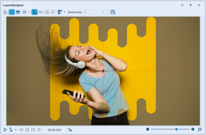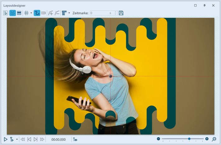 Um das Effekt-Ergebnis an einer anderen Stelle zu zeigen, markieren Sie den farbigen Effekt in der Timeline. Nun können Sie das freigestellte Bild durch Verschieben mit der Maus im Layoutdesigner platzieren und dieses bei Bedarf auch in der Größe anpassen.