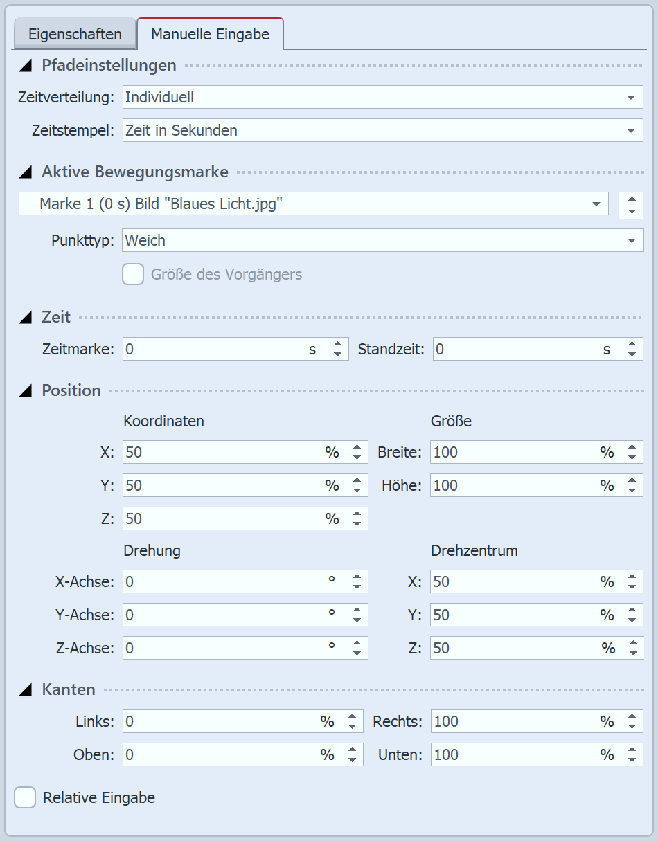 Aktivieren Sie die Option, werden die Werte immer relativ zur gerade bestehenden Position angewendet. |