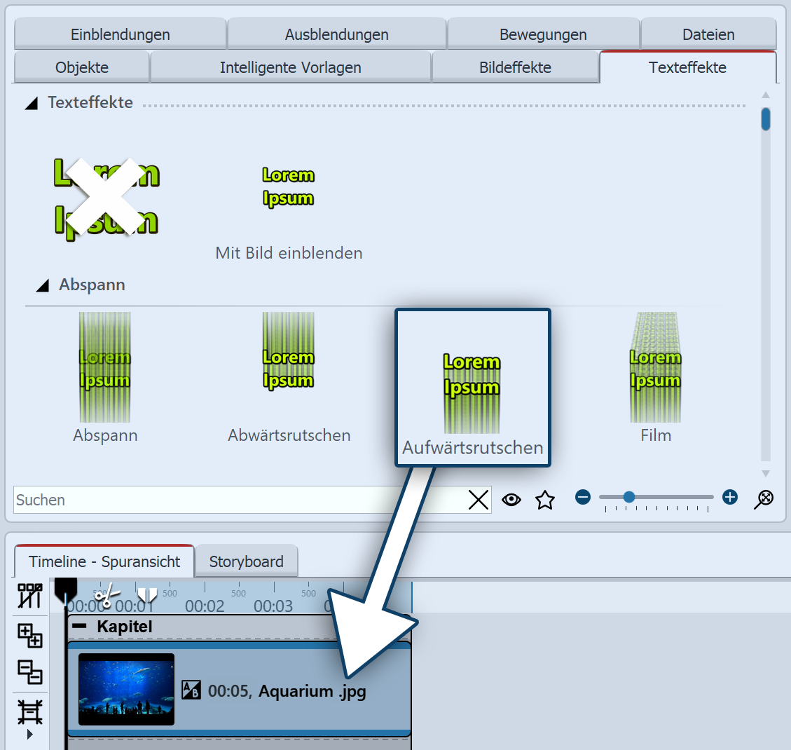 Texteffekt auf Bild in der Timeline oder im Layoutdesigner ziehen