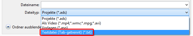 ![]() Als Textdatei speichern Wählen Sie unter Dateityp das Format Text-Datei (Tab-getrennt). |