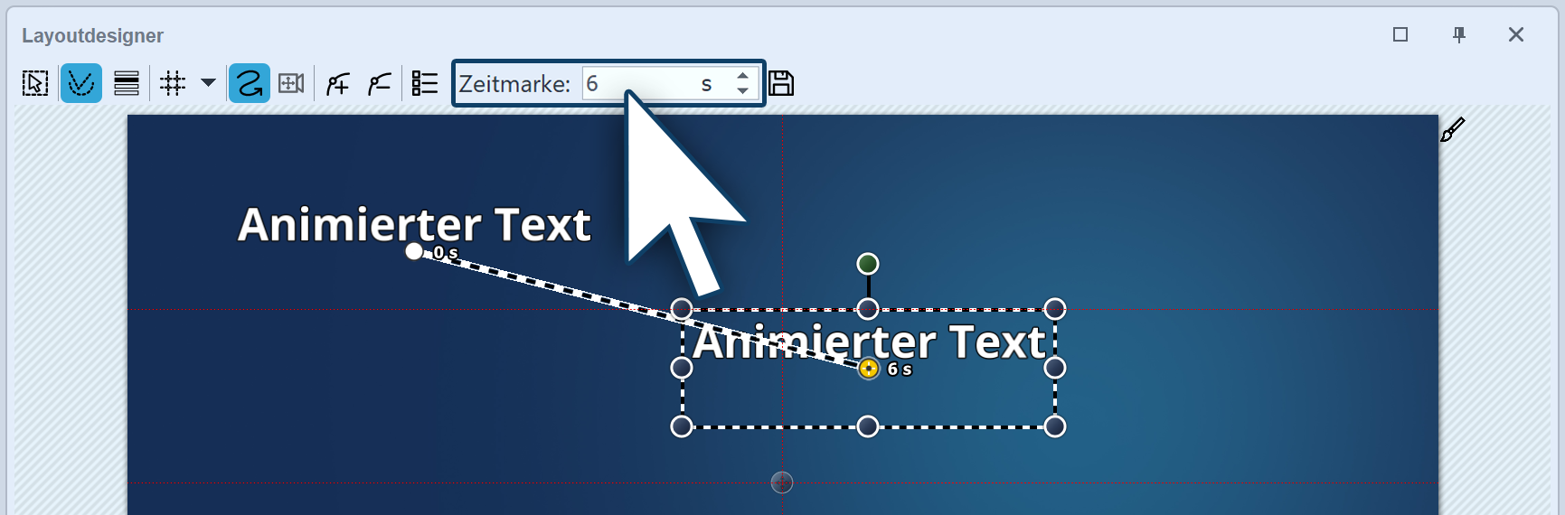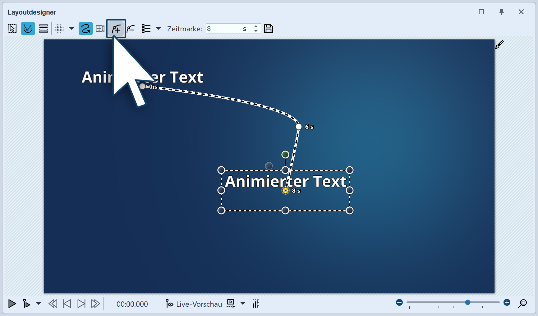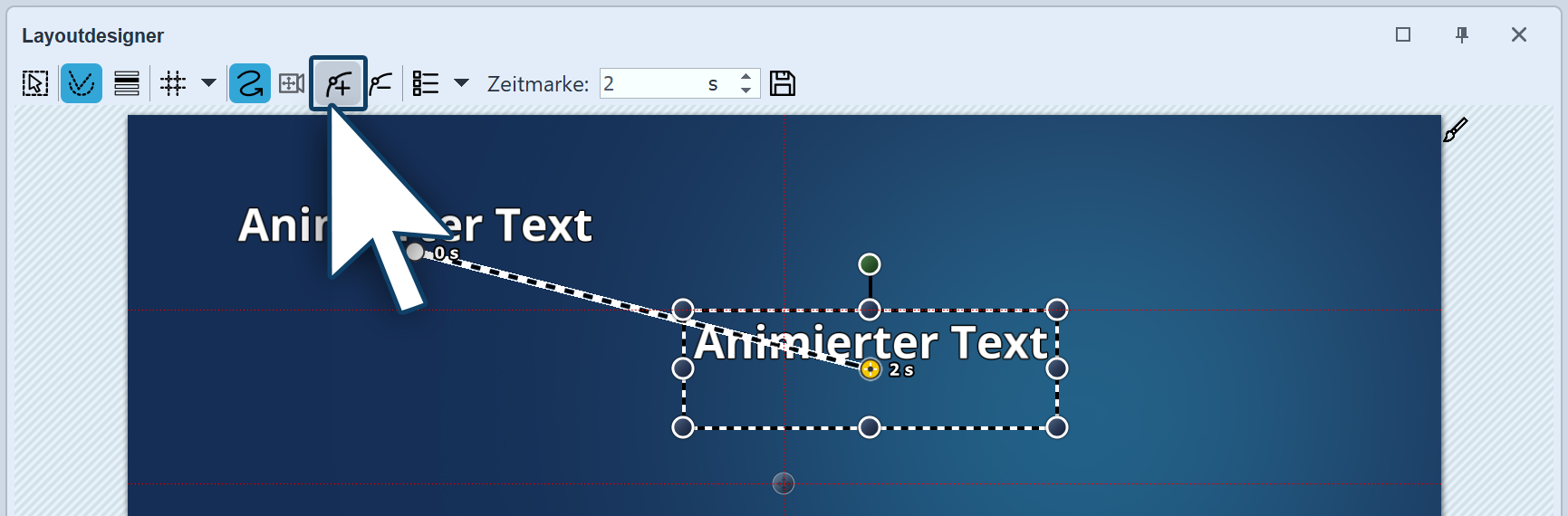 Dies ist das Symbol um im Layoutdesigner in den Bewegungspfad-Modus zu schalten. Klicken Sie auf das Symbol, bevor Sie eine Animation erstellen. |
