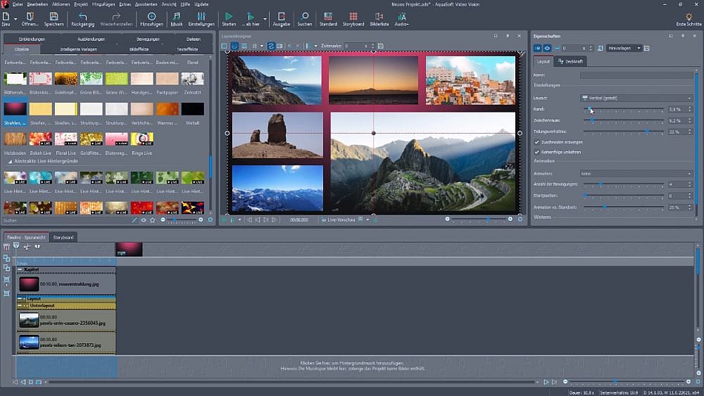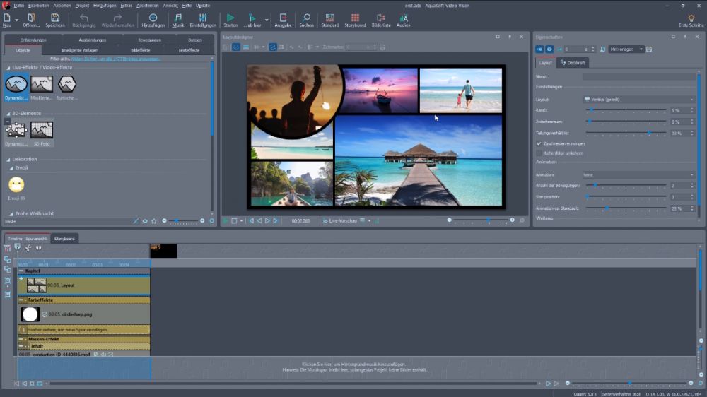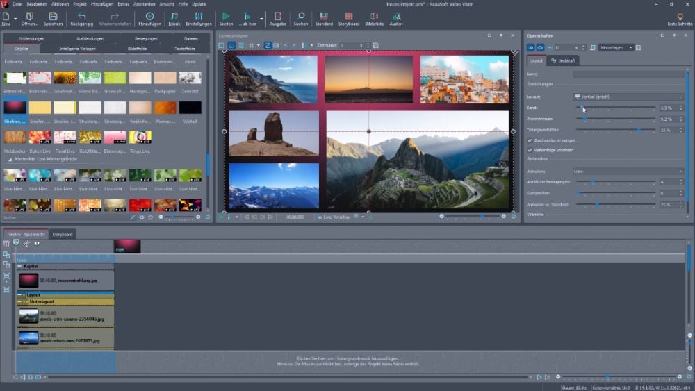 - Layouts mit Fotos füllen + animieren + Ränder einfügen & mit Videos überlagern