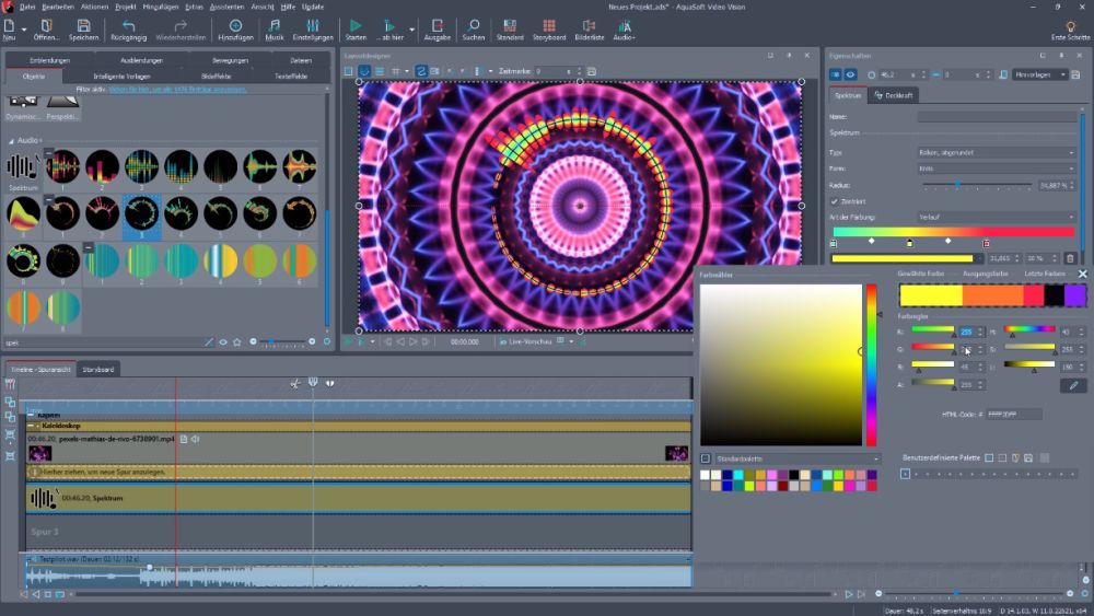 - Kaleidoskop-Effekt und Einstellungen + Sound mit Audio-Spektren in Kombination