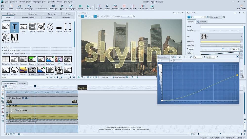 Die zahlreichen und detaillierten Workshops zeigen die Leistungsfähigkeit von STAGES im Detail. In diesem Lernkurs-Volume 6 ist das Arbeiten mit Kurven (Keyframes) ein großes Thema, damit bringen Sie Bewegung bzw. Dynamik in Ihre verwendeten Effekte und schaffen noch mehr Kreativität und Ausdruck in Ihren Filmprojekten. Die Kurven bzw. Keyframes stellen ein großes PLUS in der Videobearbeitung gegenüber Video Vision dar.