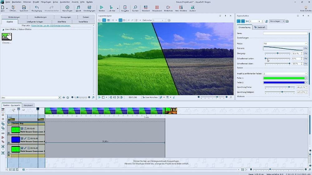 - Splitscreen-Animation mit Chroma Keying bearbeiten & mit Keyframes (Kurven) abmischen