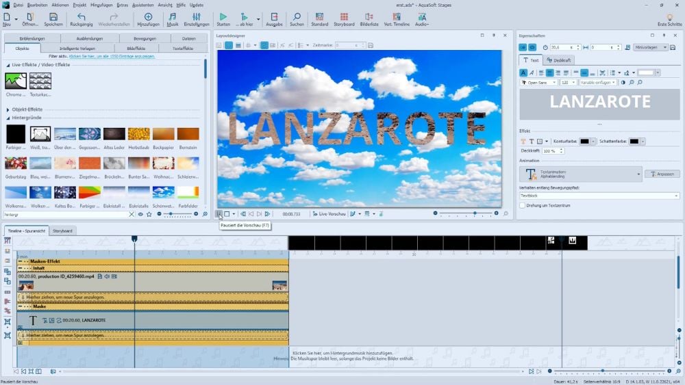 - Textmasken mit Video-Content füllen + zeitlich abgestimmten Bewegungspfad