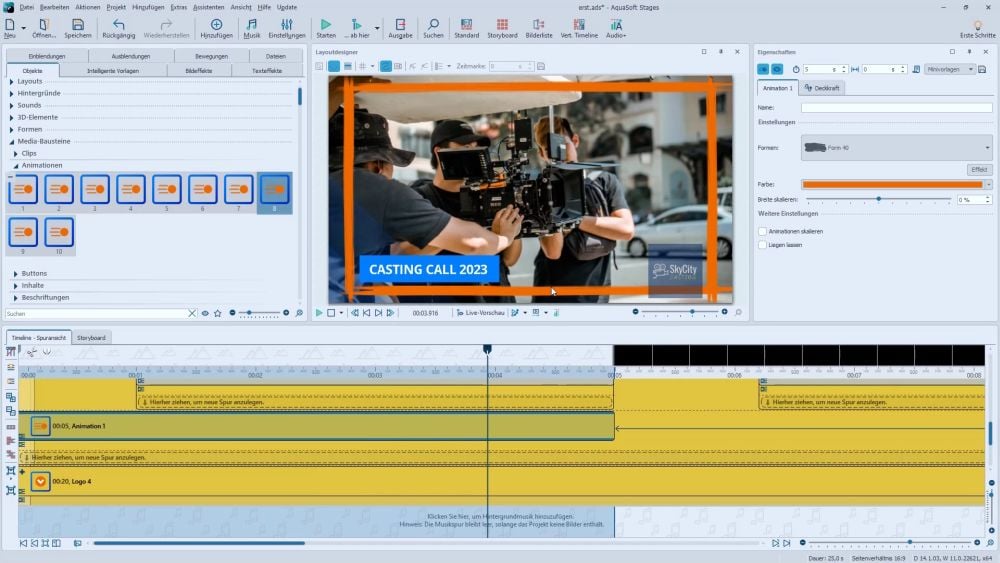 2. Kapitel: Neuerungen in Stages 2023 - Timeline, Objektfarbe, Audio, Import, Media-Bausteine u.v.m.