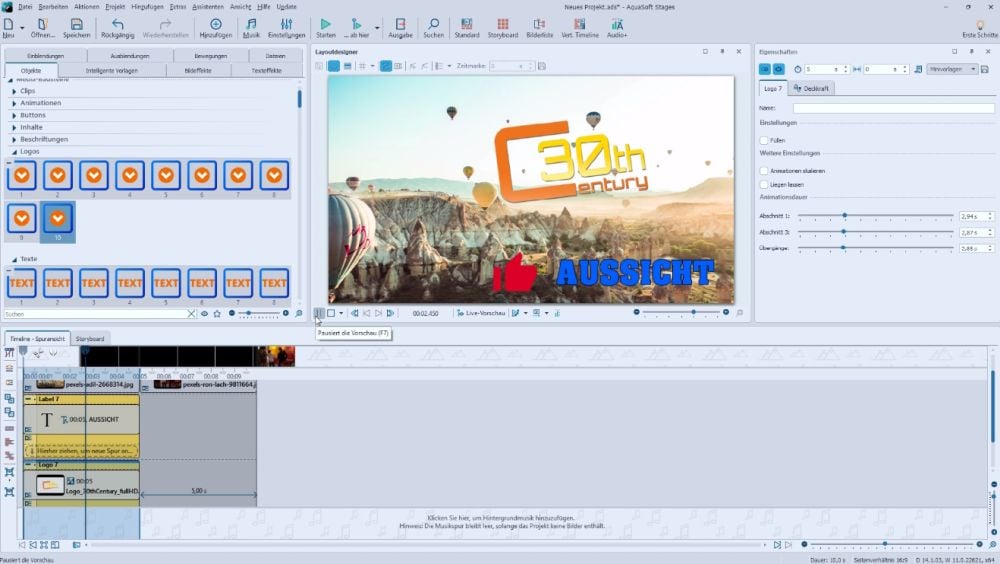 - Media-Baustein - Beschriftungen und Logos im Projekt verwenden und bearbeiten