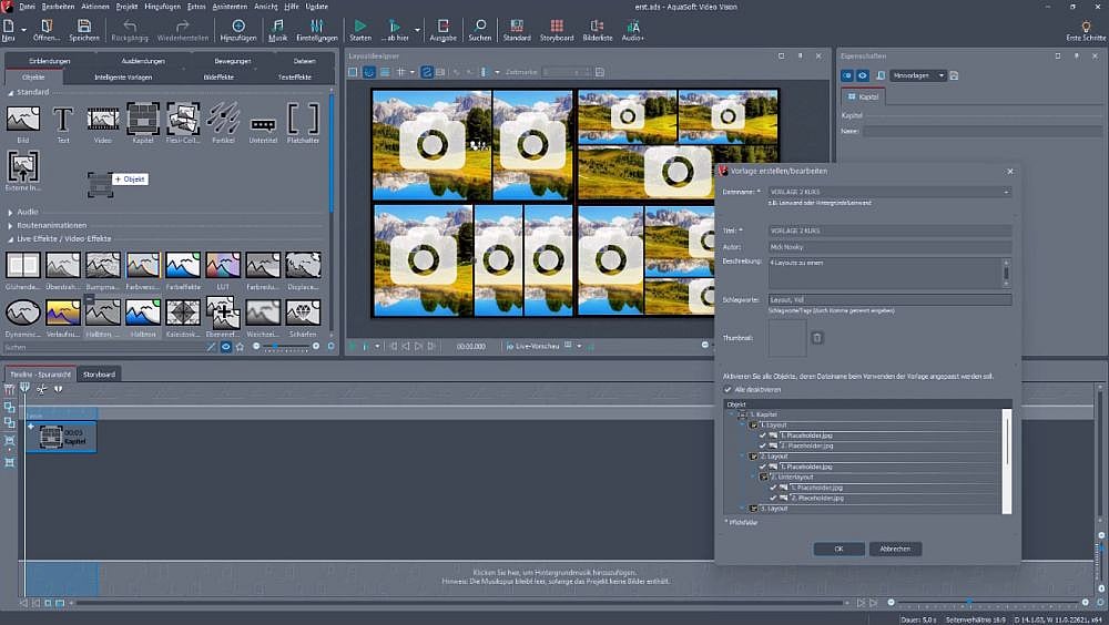 - Projekte mit fertigen Layouts (Foto-Animation) in andere Filmprojekte übernehmen