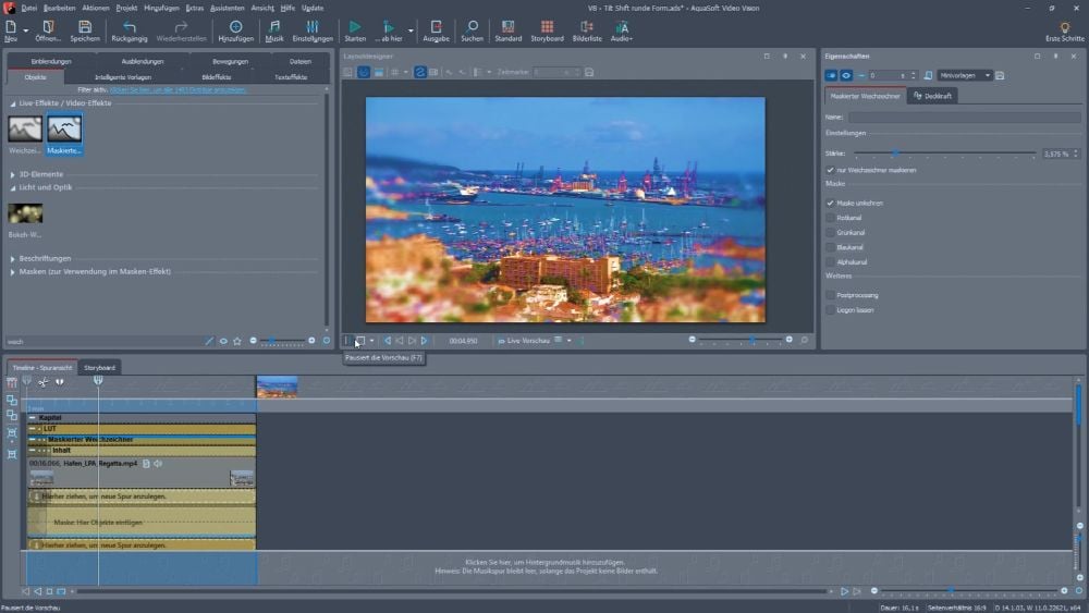 3. Kapitel: Effekte - Tilt-Shift (Miniaturlandschaften) + Maskierungseffekte + Schnelle Schnitte auf den Takt der Musik (Speedvideo)