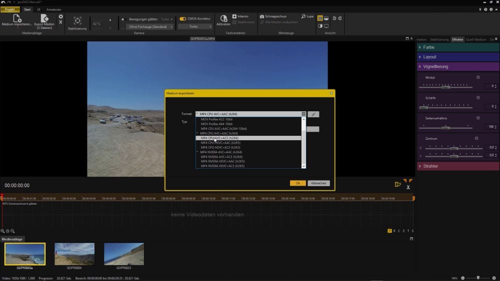 4. Kapitel - proDAD Mercalli V6 - Videostabilisierung, CMOS-Korrektur, Effekte & Export