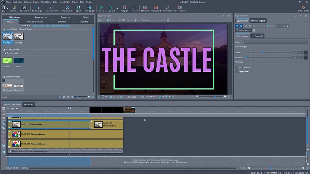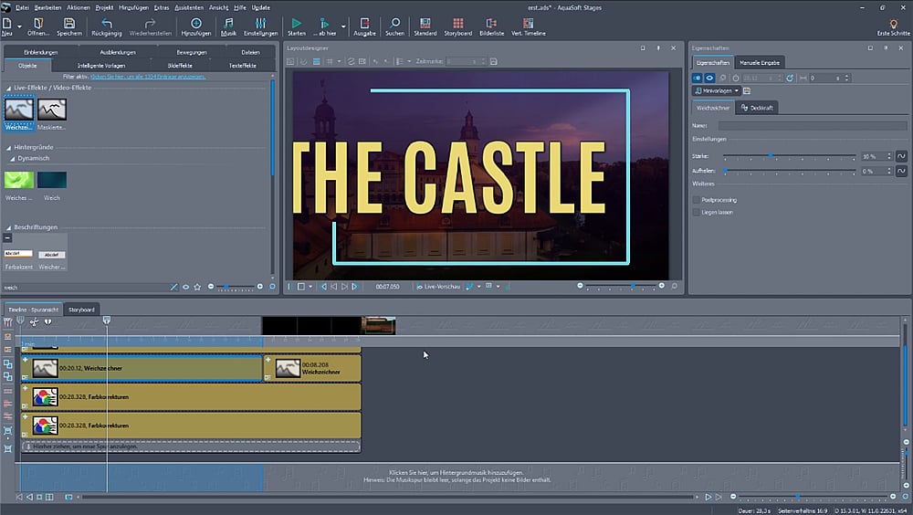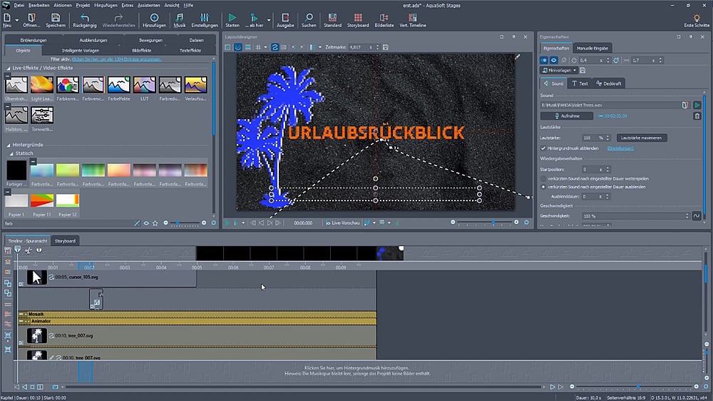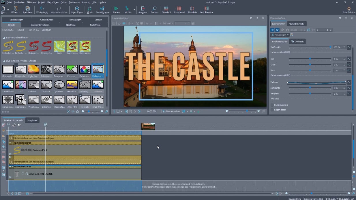 - Titelanimation in Rahmen einfügen + Farbtönung + Zeiten für Bewegungsmarken setzen + Tipps