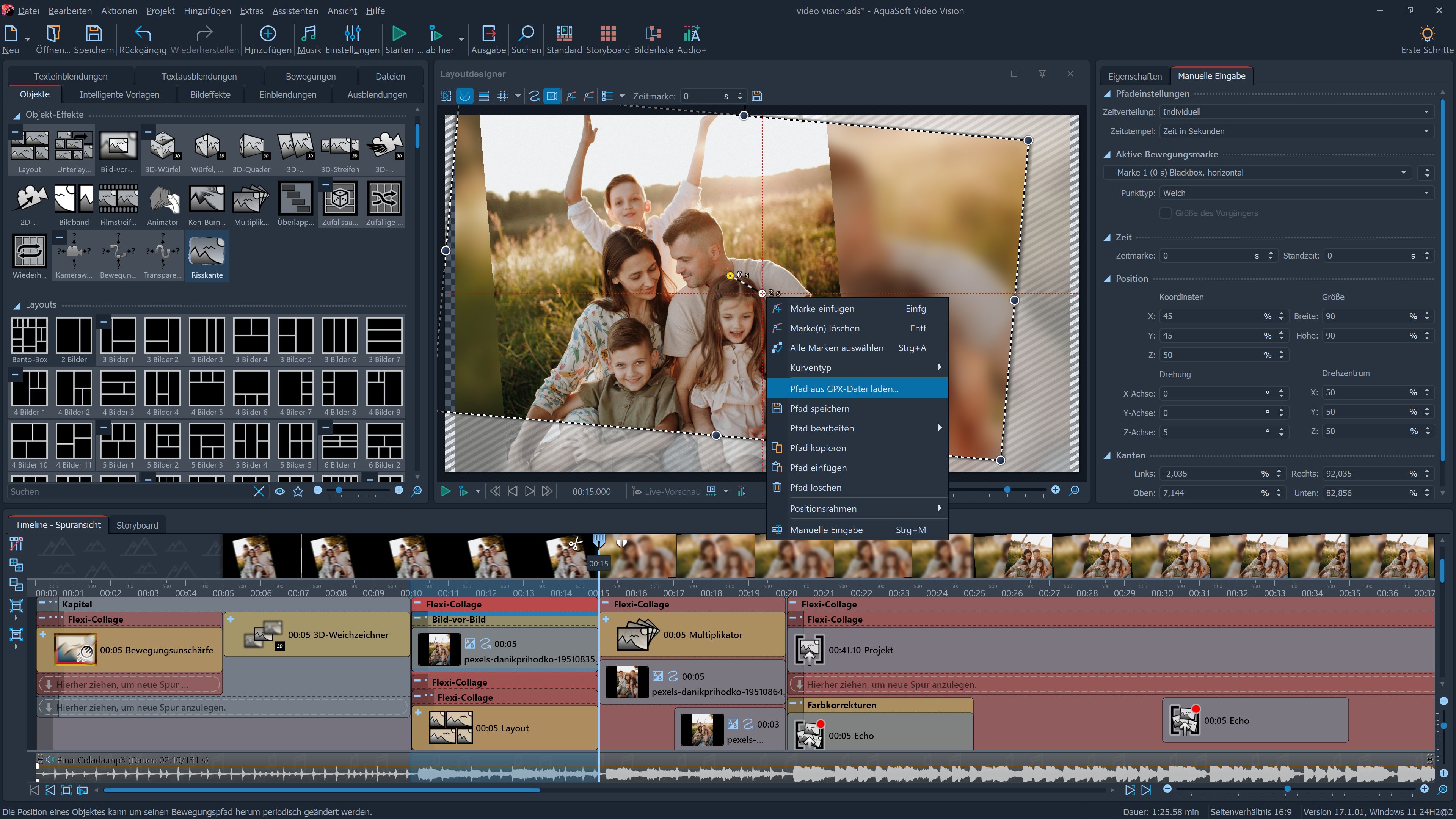 - Collagen mit beliebig vielen Spuren in der Timeline erzeugen