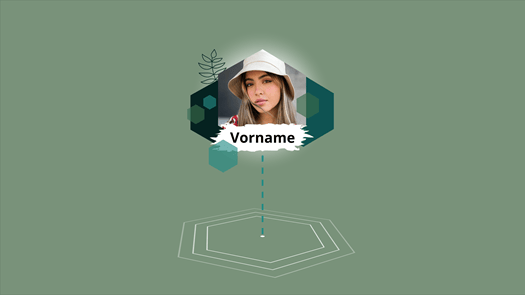 Vor einem einfarbigen Hintergrund erscheint das Foto einer Person, dekoriert mit sechseckigen Formen. Eine gestrichelte Linie markiert einen Punkt, von dem aus sechseckige Ringe ausstrahlen. In einem zweiten Beispiel ist die Animation auf einem Bild positioniert und markiert damit eine bestimmte Stelle. Mit einem Kameraschwenk wird auf Hintergrundbild und Markierung herangezoomt. Die Animation kann unter anderem zur Ortsmarkierung in einem Urlaubsvideo verwendet werden.